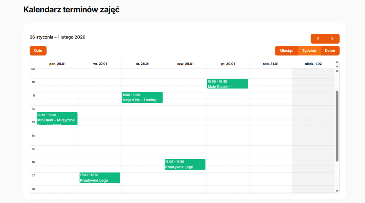 - Obsługujesz zarówno zajęcia cykliczne, jak i jednorazowe wydarzenia - w tym samym systemie.