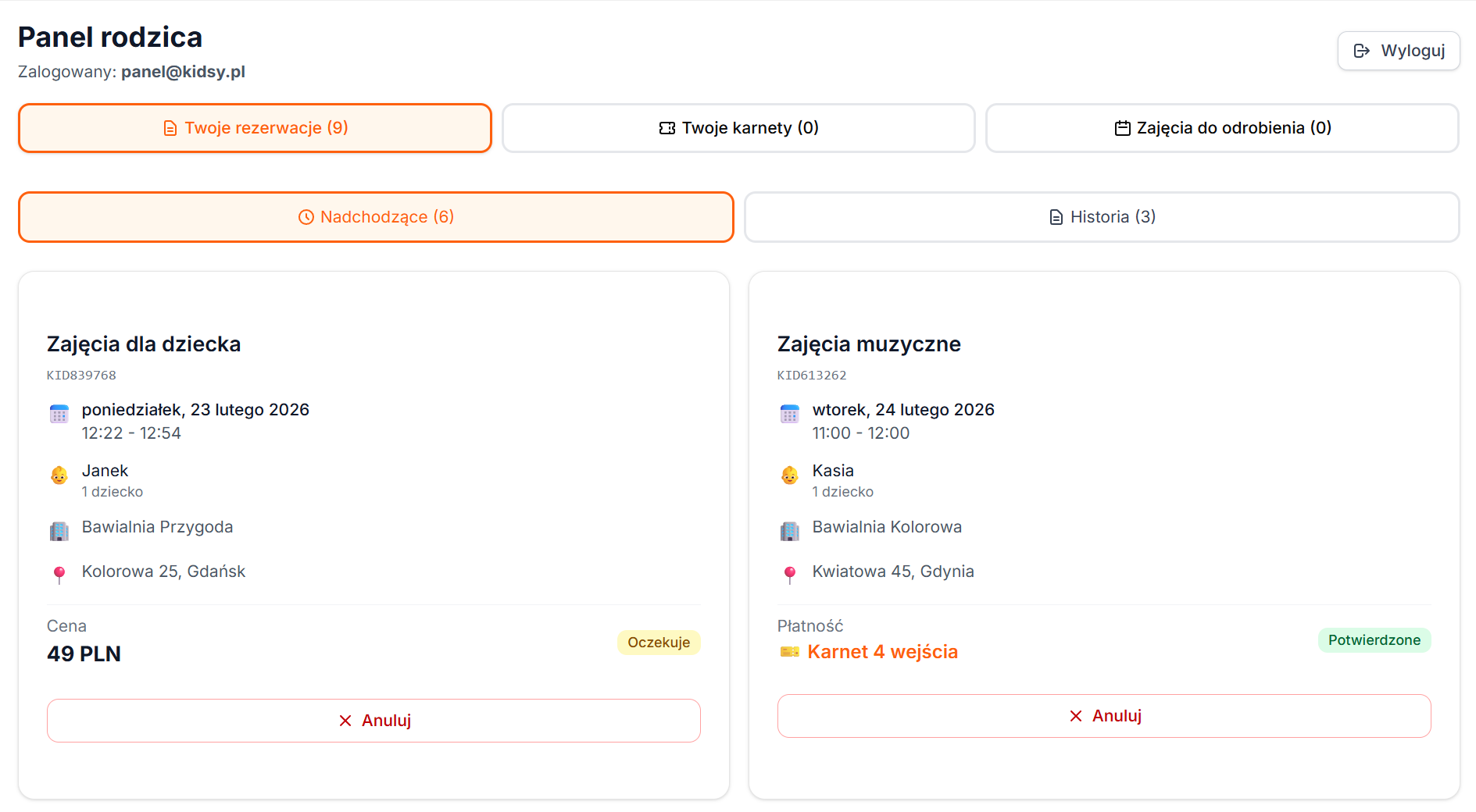 Historia rezerwacji, karnety, dane dzieci — wszystko w jednym miejscu.